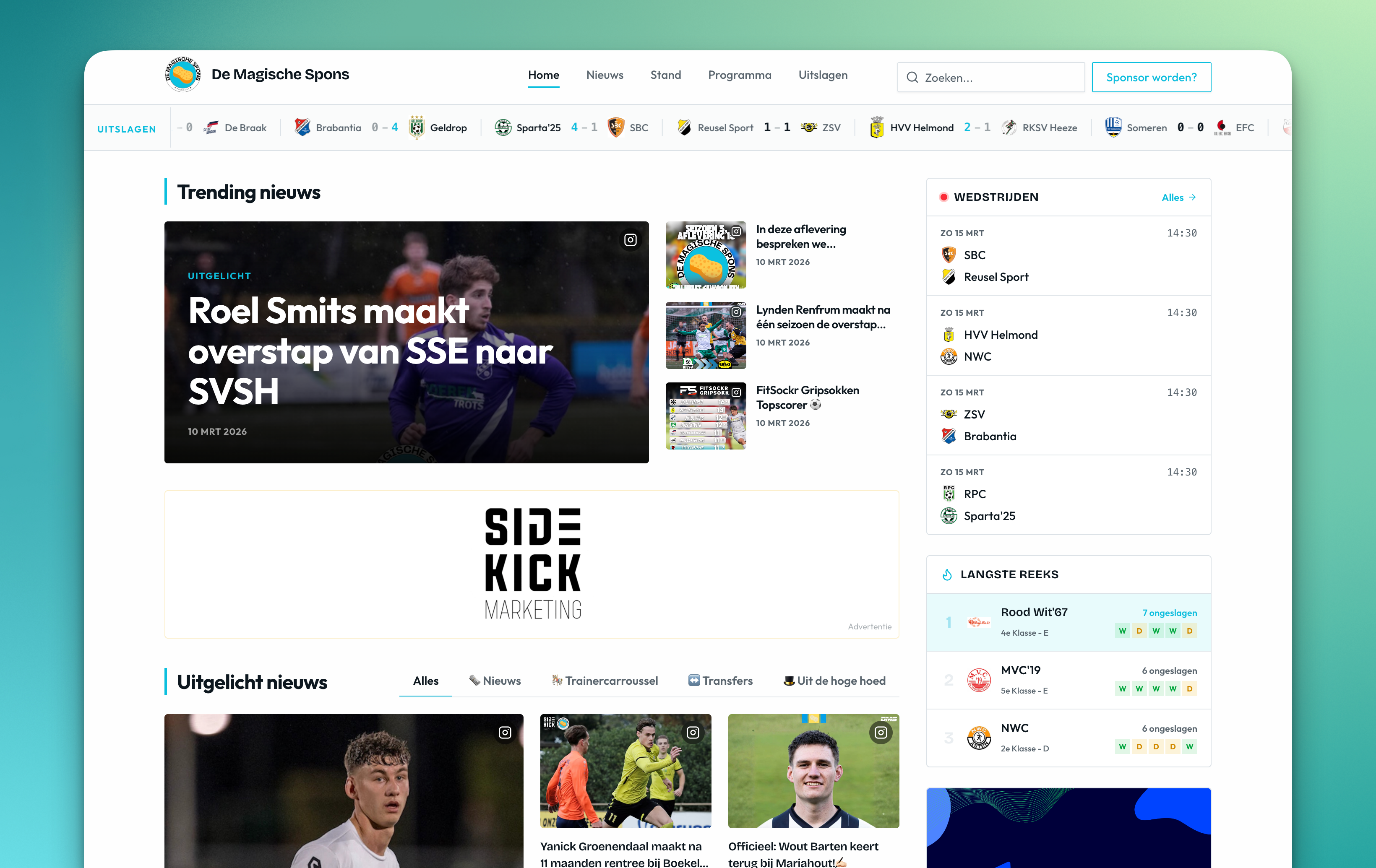 Een moderne website voor amateurvoetbal nieuws en competitie-informatie. De website biedt fans real-time toegang tot wedstrijduitslagen, teamstatistieken en het laatste nieuws uit de amateurvoetbalwereld. Belangrijke functionaliteiten: - Gepagineerde artikelen met categorie-filters - Real-time wedstrijdstanden en uitslagen - Team- en divisie-overzichten - Volledig responsive design met dark mode - SEO-geoptimaliseerd